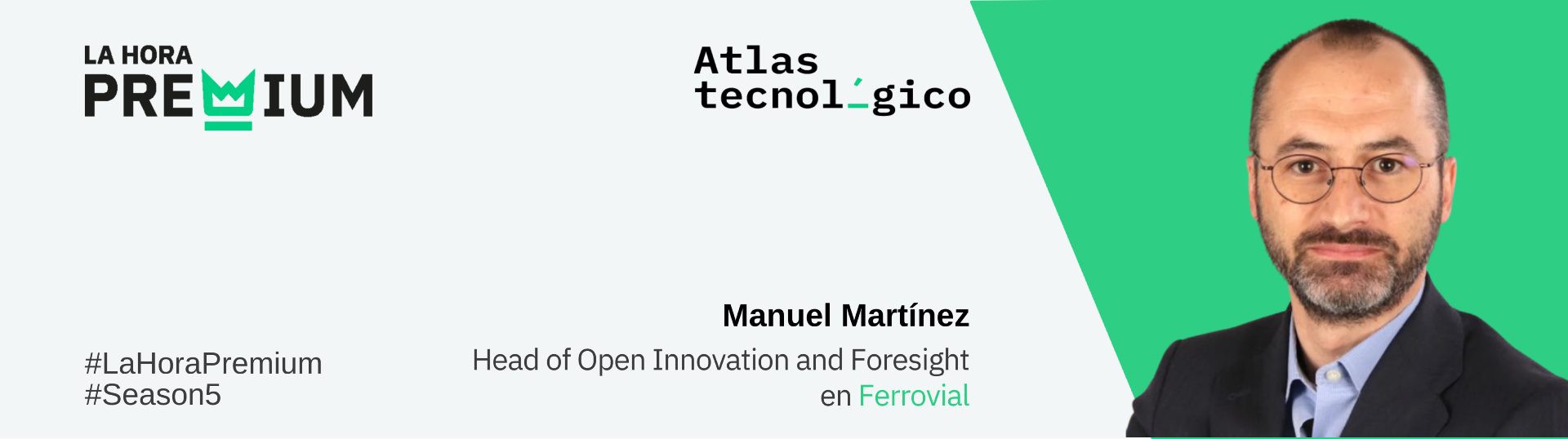 Invitado: Manuel Martínez. Head of Open Innovation and Foresight en Ferrovial. Conductores: Francisco J. Jariego (Investigador independiente / Indieresearch y colaborador en Atlas Tecnológico) e Isabel Fernández Peñuelas (Directora de Estudios de Futuros en The Futures Factory y colaboradora en Atlas Tecnológico). Este seminario forma parte de 'La Hora Premium', una iniciativa de formación de Atlas Tecnológico exclusiva para usuarios Premium. Consulta el programa completo en www.atlastecnologico.com (sección 'Eventos').