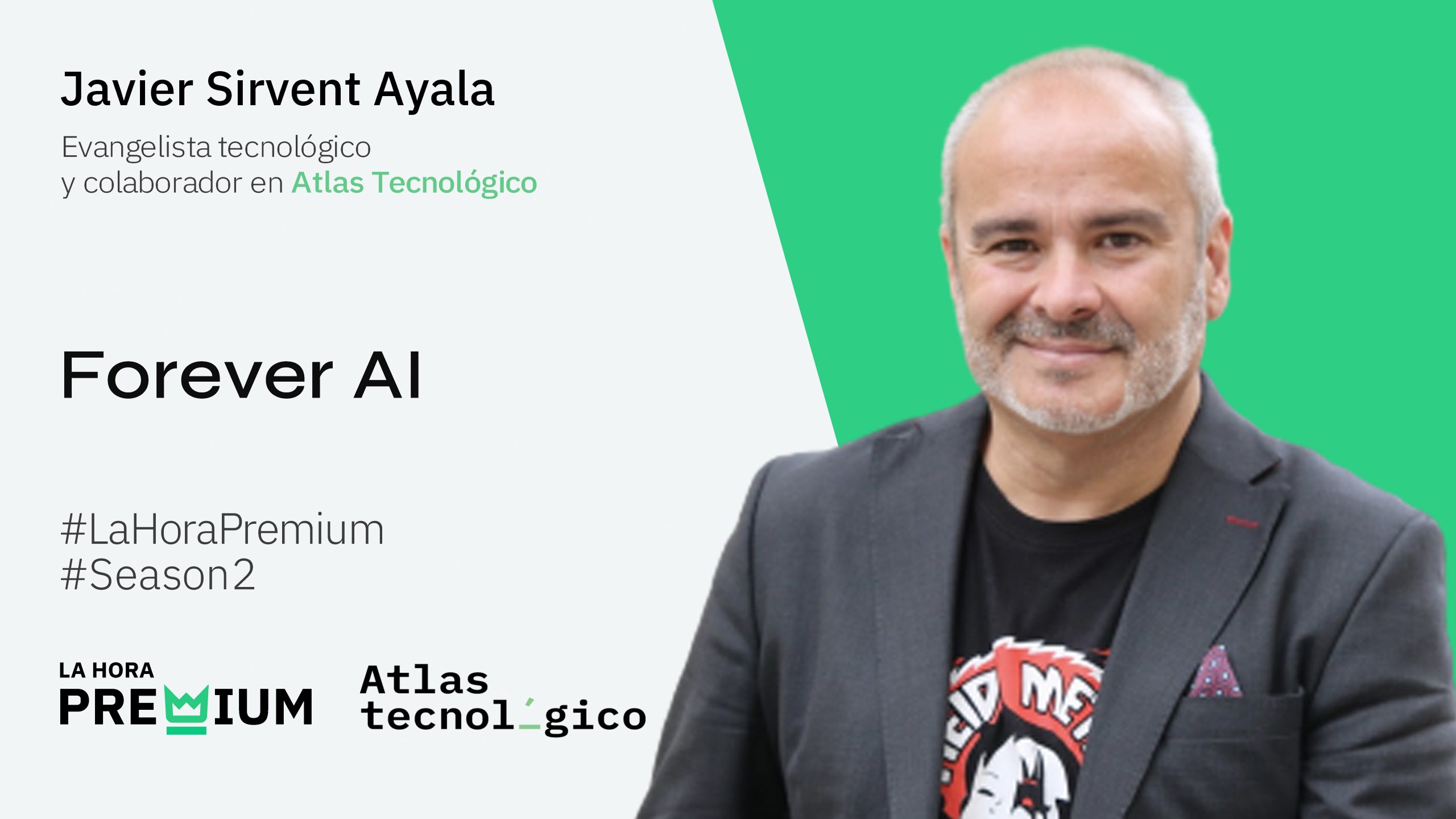 Ponente: Javier Sirvent Ayala. Evangelista Tecnológico en FOM y colaborador en Atlas Tecnológico. SEMINARIO EN ABIERTO. Apodado como el ‘1er Technology Evangelist Español’, Javier Sirvent, protagonizará una nueva entrega del formato de formación para directivos que impulsará Atlas Tecnológico con una ponencia bajo el título "Forever AI".