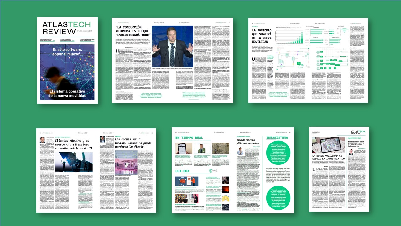 El número 16 de ATLASTECH REVIEW analiza el impacto de la revolución tecnológica en la movilidad, que está construyendo su nuevo sistema operativo. «Es software 'eppur si muove'...» Para ello conversamos con dos directivos de primer nivel mundial: el director de desarrollo de negocio de la división de Cadena de Suministro Global de Walmart, el gigante de la distribución, Miguel Ángel Sánchez Valero, que nos atiende desde los headquarters ubicados en Arkansas, Estados Unidos; y con la directora de innovación de Ford Europa, Paula Carsí, que pone el acento en cómo la inteligencia y el software están cambiando la forma de fabricar y de relacionarse con los proveedores.