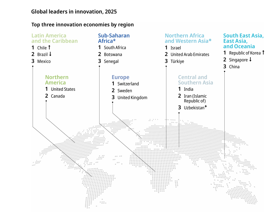La edición 2025 del GII retrata un mundo en transición y extrae tres grandes mensajes. En primer lugar, la capacidad innovadora se expande en todas las regiones, con avances notables en Asia Central y Meridional, África Subsahariana y Oriente Medio. India, Marruecos y Filipinas son ejemplos de cómo estrategias bien definidas permiten construir ecosistemas de innovación sólidos.