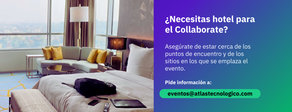 Las inscripciones para asistir al evento están disponibles a partir del lunes 2 de febrero, a través de la web del evento, rellenando e formulario de inscripción habilitado. Además, desde Atlas Tecnológico te ayudamos a gestionar cualquier servicio complementario que necesites para que tu experiencia Collaborate sea lo más completa posible. No dudes en contactar con nosotros.