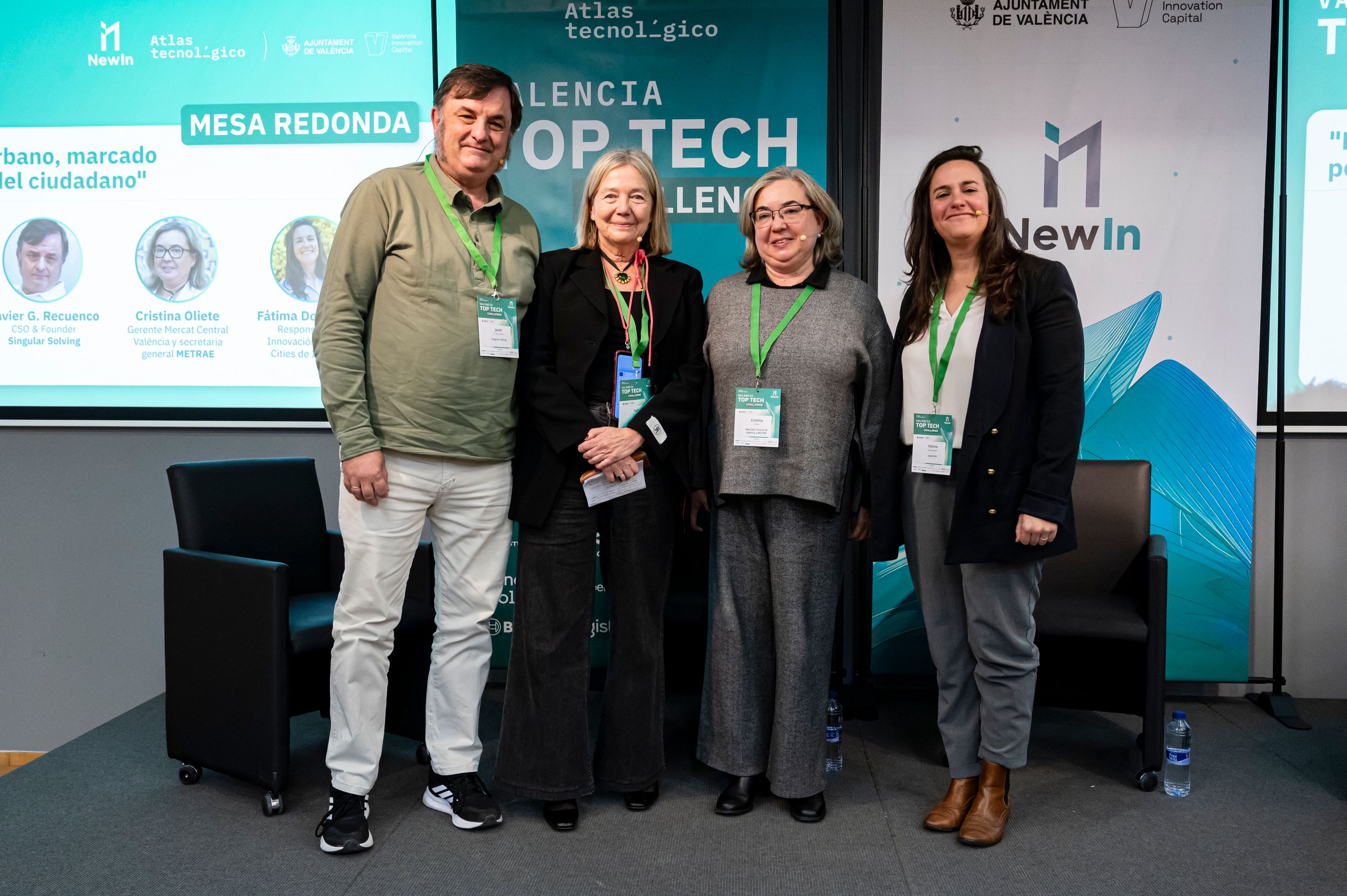 La mesa moderada por Isabel Fernández Peñuelas, direc ora de The Futures Factory, titulada ‘El nuevo modelo urbano, marcado por el reencuentro del ciudadano’, reunió a tres expertos en torno a las oportunidades que plantean las ciudades del futuro: Javier G. Recuenco (CSO y founder de Singular Solving), Cristina Oliete (gerente del Mercat Central de València y secretaria general de METRAE) y Fátima Domínguez (responsable de innovación en smart cities de Iberdrola).