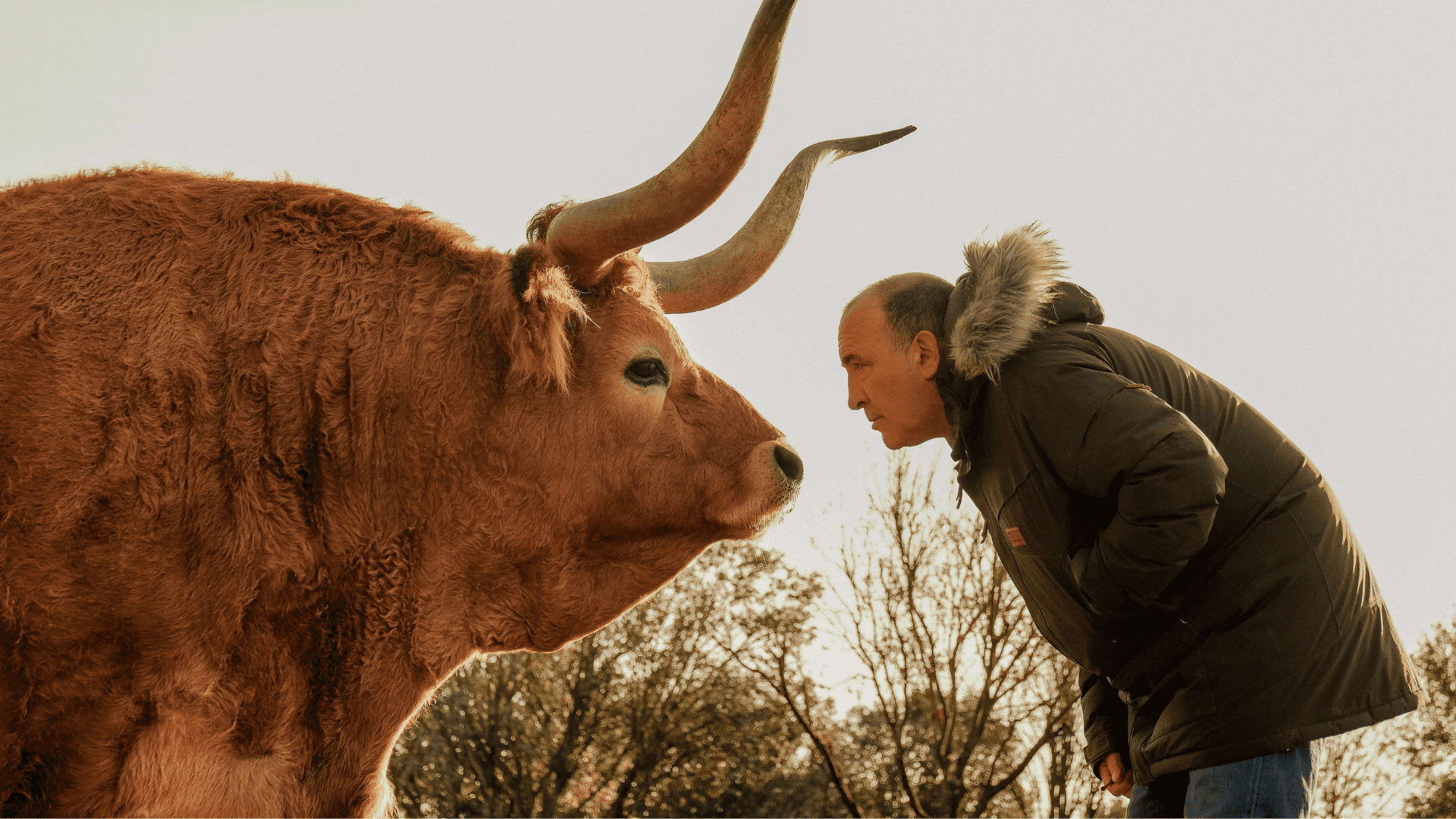 José Gordón, propietario de la empresa, junto a un buey