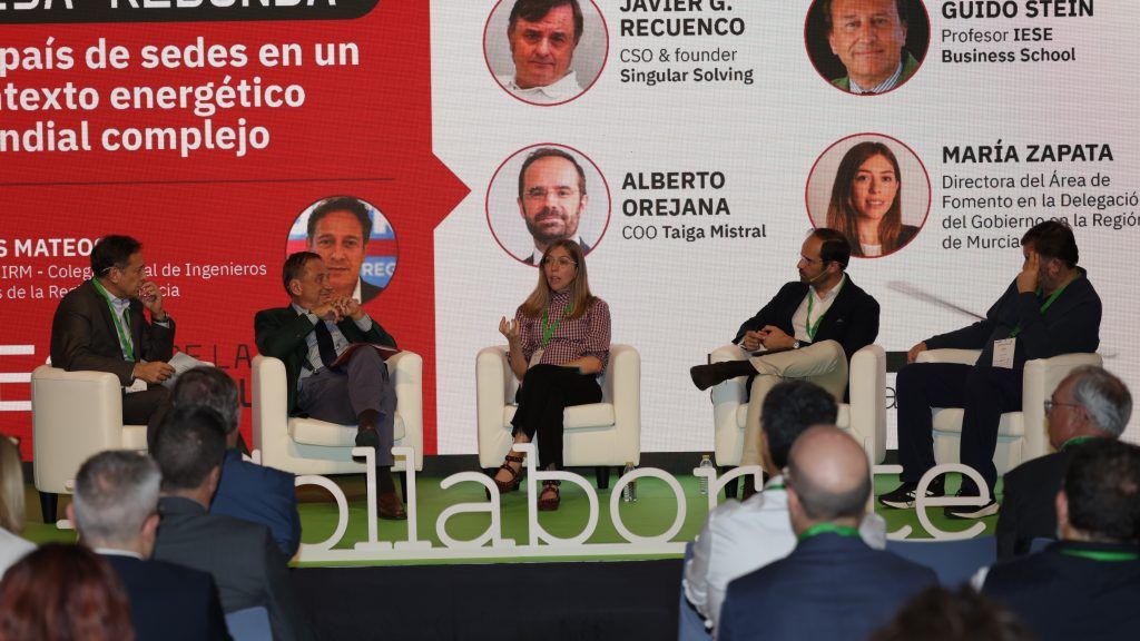 La energía ha sido el eje de una de las mesas redondas del Collaborate Murcia 2025, titulada ‘Un país de sedes en un contexto energético mundial complejo’. Moderada por Marcos Mateos, decano del Colegio Oficial de Ingenieros Industriales de la Región de Murcia (COIIRM), ha reunido a Javier G. Recuenco (CSO y fundador de Singular Solving), Guido Stein (profesor de IESE Business School), Alberto Orejana (COO de Taiga Mistral) y María Zapata (directora del Área de Fomento en la Delegación del Gobierno en la Región de Murcia).