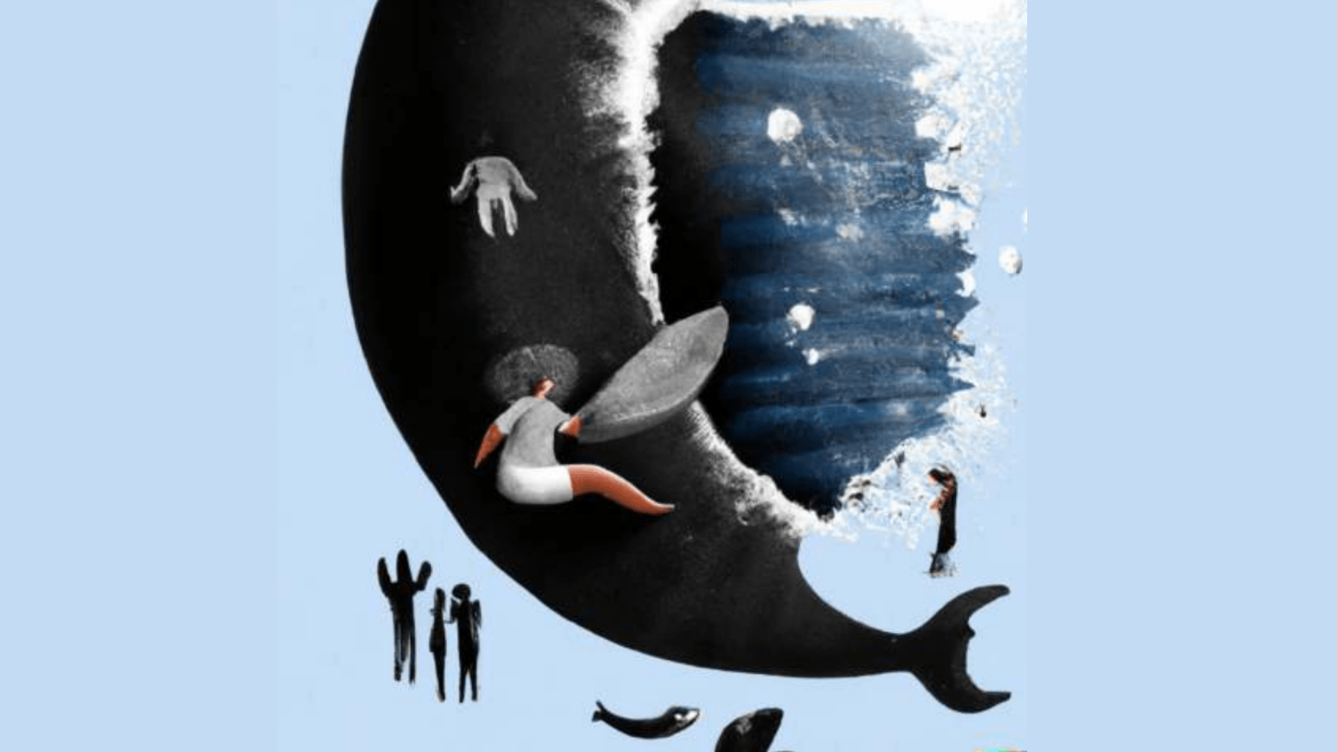 Imagen creada por DALL-E sobre “En el vientre de la ballena”