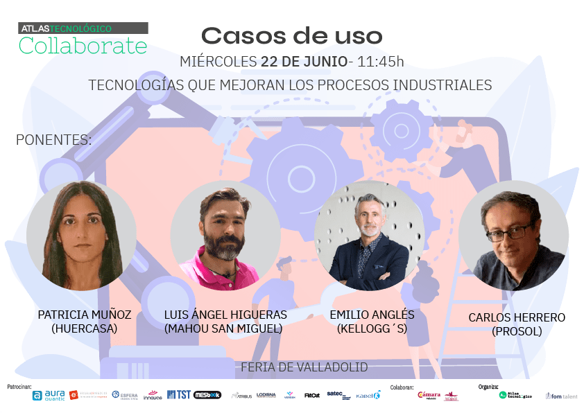 ¿Qué tecnologías priorizar a la hora de mejorar los procesos industriales en nuestra empresa, especialmente si buscamos avanzar en la automatización? En Collaborate Summer 2022 de Atlas Tecnológico, que se celebra el próximo 22 de junio en la Feria de Valladolid, conoceremos las claves de Patricia Muñoz, responsable de sistemas de Huercasa; Emilio Anglés, responsable de digitalización de Kellogg's; Luis Ángel Higueras, project manager de Mahou San Miguel; y Carlos Herrero, responsable de transformación digital de Prosol. La sesión que lleva el título «Tecnologías que mejoran los procesos industriales» y será moderada por el analista de innovación, Eugenio Mallol.