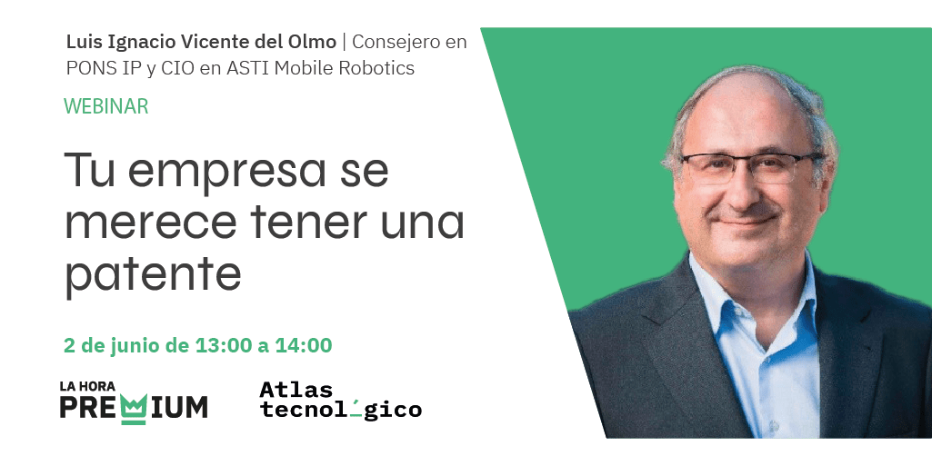 Luis Ignacio Vicente del Olmo, consejero en PONS IP y colaborador de Atlas Tecnológico será el próximo invitado en La Hora Premium el jueves 2 de junio entre las 13 y 14 horas, hablará sobre la importancia de tener una patente en una empresa en exclusiva para los usuarios Premium.
