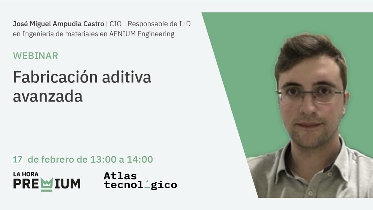 Miguel Ampudia, Responsable de I+D en Ingeniería de Materiales en Aenium Engineering, es el próximo protagonista de La Hora Premium. Este jueves 17 de febrero, entre las 13 y 14 horas, hablará sobre "Fabricación aditiva avanzada", en una sesión exclusiva para los usuarios con suscripción Premium.