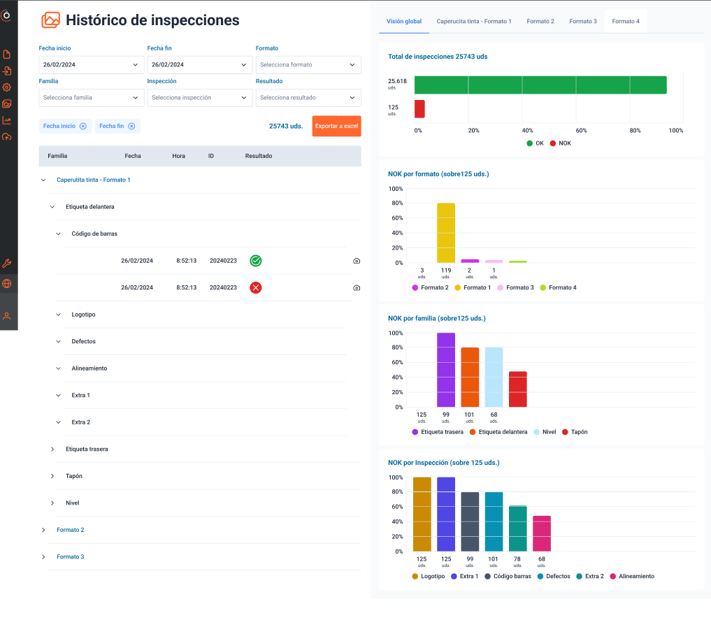 La plataforma incorpora además bases de datos de imágenes y registros históricos integrados, que permiten procesar información en tiempo real, documentar resultados y garantizar la trazabilidad de cada producto. Todo ello facilita análisis comparativos, acciones correctivas y decisiones rápidas, siempre con respaldo visual