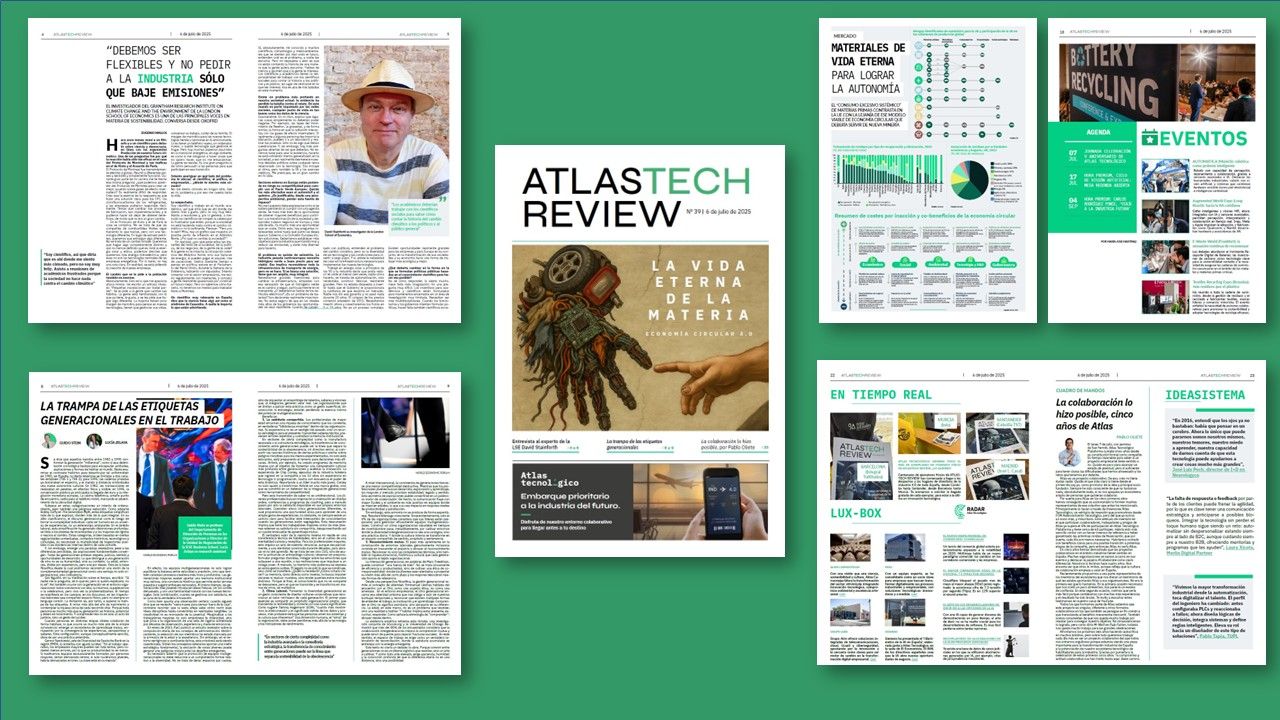 La Economía Circular 4.0 es el tema central de nuestra nueva entrega del ATLASTECH REVIEW, pocos ámbitos concentran tal cantidad de innovación tecnológica e implican a tanta variedad de sectores, la irrupción de la inteligencia artificial sólo ha añadido más interés a un ámbito vinculado a la autonomía estratégica de una Europa dependiente de materias primas de terceros, el número incluye una conversación con uno de los referentes en el debate sobre el cambio climático, el profesor de la London School of Economics David Stainforth