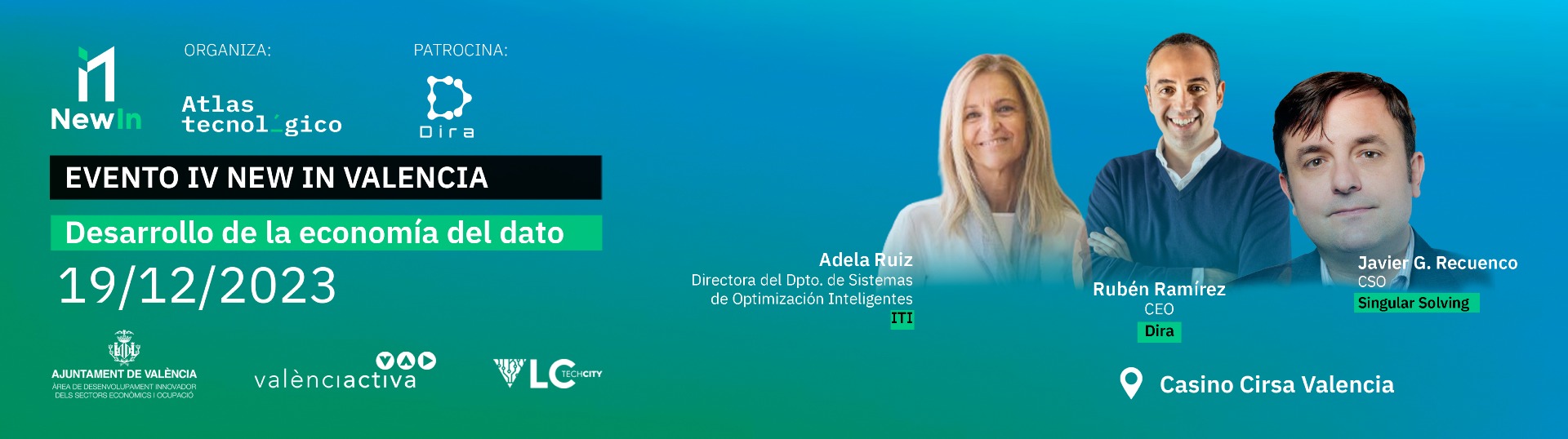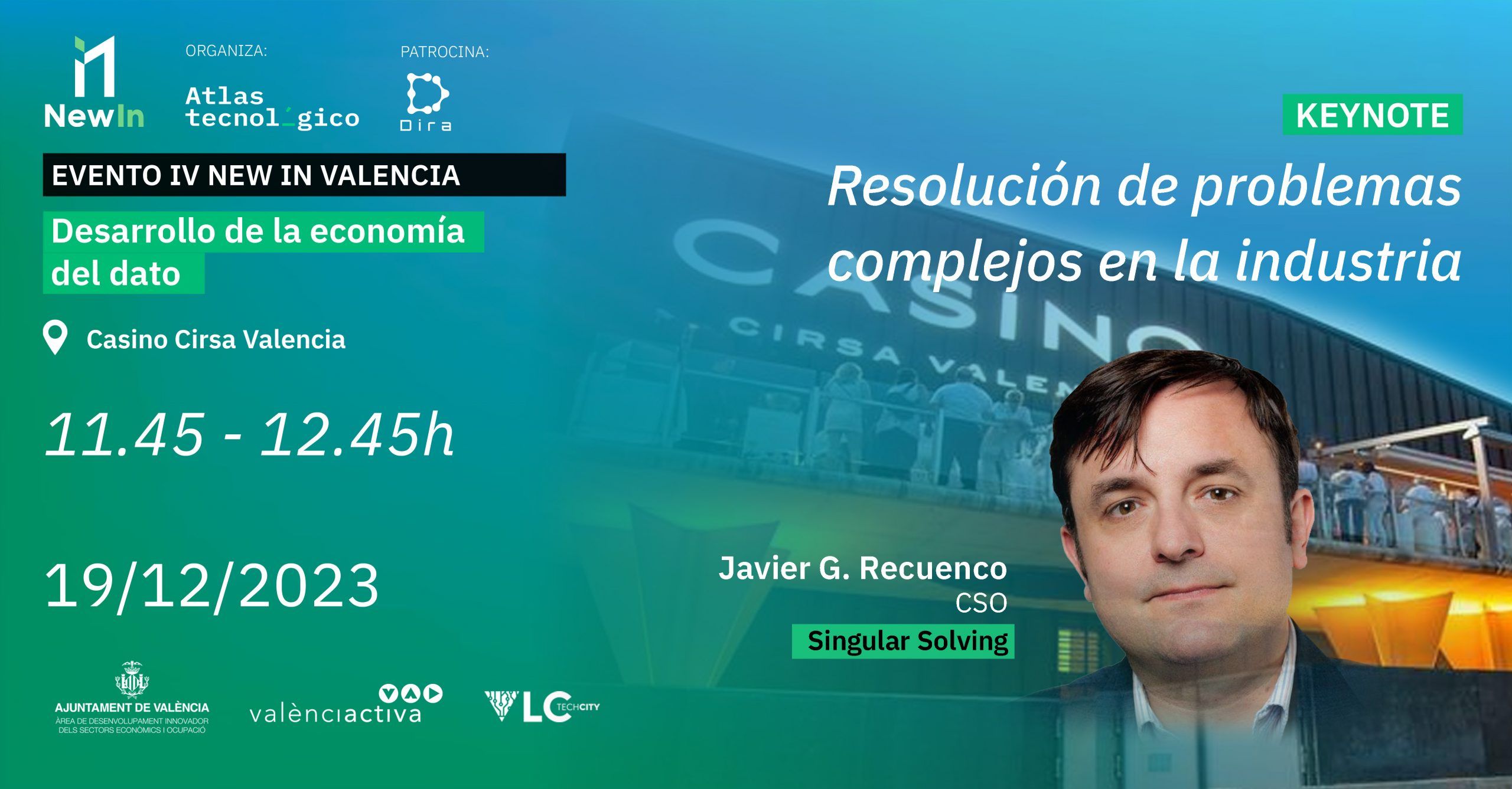 La segunda parte comenzará con un café networking en el Casino Cirsa Valencia, el cual dará paso a una serie de casos de uso donde ponentes como Javier G. Recuenco, CSO de Singular Solving, nos hablarán sobre cómo aprovechan la información del dato desde sus respectivas empresas.