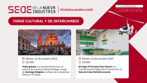 El Collaborate Murcia 2025 arrancará el 15 de octubre con las esperadas visitas a empresas industriales, que en este ocasión serán un total de 20 procedentes de sectores como el agroalimentario, el químico, farmacéutico y el tecnológico: el lunes 15 de septiembre se abre el formulario para escoger las visitas
