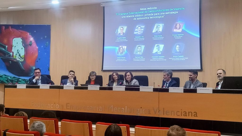 Desde el sector empresarial, la presidenta de VaSIC (Valencia Silicon Cluster) y presidenta de MaxLinear, Mayte Bacete, ha introducido otro reto: “las cátedras han sido un gran impulso, pero también necesitamos servicios hacia las empresas, como testeo de prototipos o validaciones, que hoy muchas veces tenemos que hacer fuera. Una gran industria no viene donde no hay un ecosistema completo”.